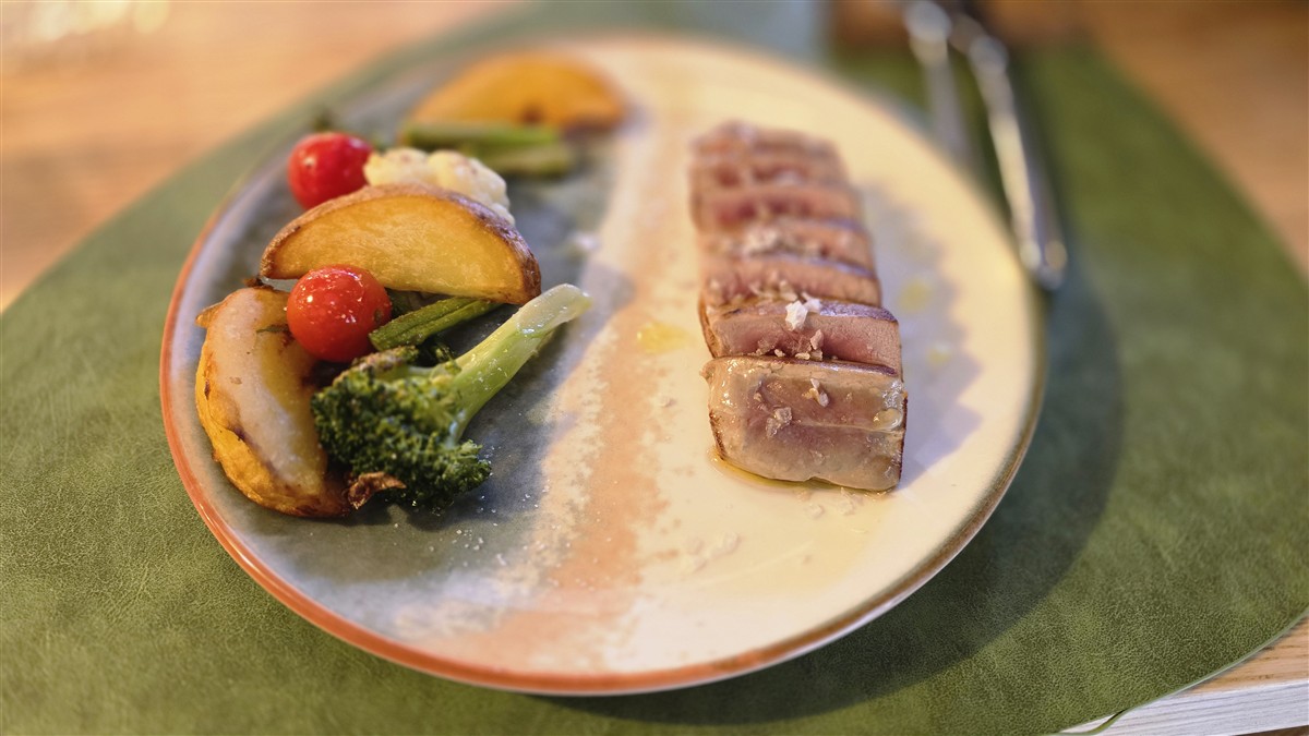 Was die Küche auszeichnet, ist ihre Authentizität. Alles entsteht frisch, vieles stammt aus direkter Nachbarschaft: Gemüse vom Markt, Fisch aus den Küstenorten, Fleisch aus regionaler Aufzucht. Selbst die Desserts werden regelmäßig neu kreiert und sind ein fester Bestandteil des Erlebnisses – kein standardisiertes Finale, sondern handwerklich gemachte Kompositionen, die immer wieder überraschen.